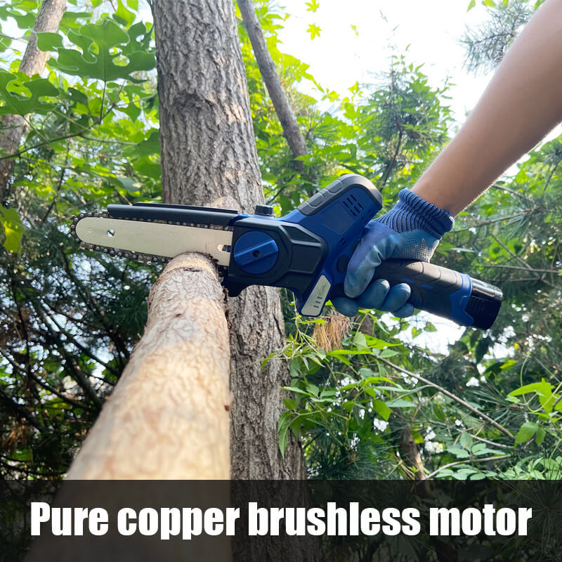 The pump oil system provides steady lubrication, ensuring the battery chainsaw cuts smoothly and efficiently. Powered by a chainsaw electric battery, it offers cordless convenience and strong performance in various gardening tasks.